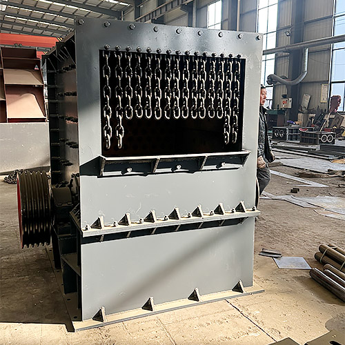箱式破碎機由(yóu)於單個錘頭質量大,錘頭轉動慣量(liàng)大,克服了其它(tā)錘破機錘頭磨損快,易損件損耗高的弱點,具有入料粒度大、破碎比高、維護費用低的特點。箱式破碎機錘軸(zhóu)安裝可調,錘頭壽命長。柵(shān)格尺寸可調,產品粒度可控,顆粒形狀好(hǎo)。箱式(shì)破碎機機箱可翻轉,檢修較方便。